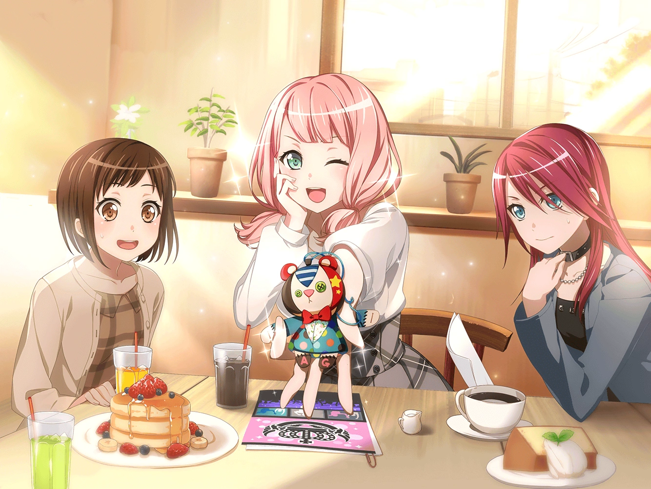 Ripples were made when they began middle school and for the first time the group was split up, Ran having been assigned a different homeroom from the others. Unable to express herself to her friends, she began skipping classes to mope on the roof. Desiring a way to make up for the time they now spent apart, they eventually decided to form a band - Afterglow, named after the rooftop sunsets they spent together.